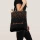 A chic black background decorated with golden glitter drops. Personalise and add a name. Golden coloured text. The name is written with a modern hand lettered style script with swashes. To keep the swashes only delete the sample name, leave the spaces or emoji's in front and after the name.