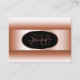 Make a lasting impression with this elegant and quality business card design featuring a rose gold colour gradient with an elegant oval rose golden decor frame and border on a black background.