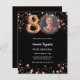 A modern, stylish photo invitation for a 80th birthday party. A classic black background, decorated with rose gold stars. Personalise and add your party details.