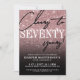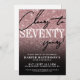 Celebrate in style with this modern elegant Seventy Birthday Party Invitation, perfect for marking a milestone in a chic, timeless way. The design features a luxurious rose gold glitter background that fades into a black gradient at the bottom, creating a glamourous, sophisticated look. A large “SEVENTY” appears at the top in a sleek serif font, with black and white script fonts above and below reading “Cheers To Seventy Years!” for a stylish, celebratory feel. The party details are arranged neatly at the bottom in classic white serif fonts, keeping the layout refined and easy to read. This invitation is perfect for the ladies who loved SATC, with a glamourous New York-inspired vibe. All colours can be customised to match your personal style or party theme. Ideal for milestone birthdays, this invitation blends modern elegance with a fun, chic twist. Available as a printed card or a digital file to share by email or print locally.