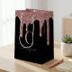 Black Rose Gold Sparkle Dripping Glitter Monogram Medium Gift Bag