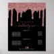 Chic, Girly Black and Rose Gold Sparkle Glitter Drips Table Tent Price List with fashion faux blush pink/rose gold glitter drips on a chic background with your custom name, products, and price list. Please contact us at cedarandstring@gmail.com if you need assistance with the design or matching products.