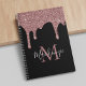 Girly Rose Gold Sparkle Glitter Drips Monogram Notebook with fashion faux blush pink/rose gold glitter drips on a chic black background with your custom monogram and name. Designed by Cedar and String. To personalise further, please click the "customise further" link and use the design tool to modify the design. If you need assistance or matching items, please contact us.