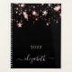 A classic black background decorated with rose gold glittery and shining stars falling, dripping. Personalise and add a year and a name. The name is written with modern hand lettered style script with swashes. To keep the swashes only delete the sample name, leave the spaces or emoji's in front and after the name.