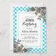 Black Rose Turquoise & White Chequered Birthday Invitation