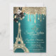 Black Roses Eiffel Tower Gold Drips Green Sweet 16 Invitation