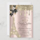 Black Roses Eiffel Tower Gold Drips Sweet 16 Invitation