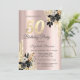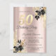 Black Roses Glitter Drips Rose Gold 50th Birthday Invitation