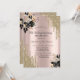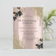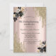 A modern, chic, and glamourous with gold glitter drips, and black roses on a rose gold background.