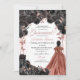 Elegant Black and Rose Gold Floral Quinceanera Birthday Invitation