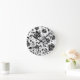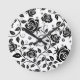 Round Clock with an elegant design featuring a black rose pattern on a white background.
