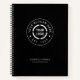 Simple custom round company logo with slogan and website address on black background, no minimum order quantity and no setup fee, great business notebook with logo.