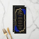 Black gold royal blue Quinceanera menu card. Features script font, roses, tiara and confetti. Classy design with faux glitter gold. Perfect for an elegant glam celebration.