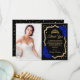Black Royal Blue Gold Quinceanera Photo Thank You Card