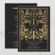 Set the tone for your medieval fantasy wedding with a bold invitation design—a grand gold sword surrounded by florals against a black background. Perfect for couples dreaming of an epic, romantic celebration. Make your love story legendary from the very first glance! NOTE: the gold featured in this design is NOT real foil.