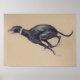 This print is a reproduction of my original coloured pencil drawing of a black running greyhound.