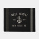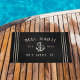 Welcome guests to your fishing boat, sailboat, yacht, or houseboat with this charming nautical doormat. Personalised design features your boat name, ship's registry, and year established in neutral tan lettering with an anchor illustration. Rope stripe detailing on a rich black background completes the design.