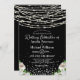 Black Rustic White Roses String Lights Wedding - This elegant black and white wedding invitation, featuring lovely string lights and white roses with diamond sparkle can be personalised with your Wedding information.