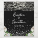 Black Rustic String Lights Bottle Label - This elegant black and white Bottle Label, featuring lovely string lights with diamond sparkle and white roses can be personalised with your Wedding information.