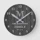 Black Rustic Wood Farmhouse Family Monogram & Name Round Clock