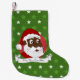Personalised design with illustration of African American Santa Clause, Christmas holidays design for kids on green seamless pattern background with green stars; with customisable text template for your name or message
