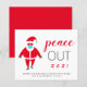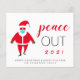 Budget-friendly and funny Christmas and New Years holiday card celebrating the to 2021. A cool retro-style black Santa Claus is wearing a face mask standing next to "Peace Out 2021" in fun typography. The greeting wishes a "Merry Christmas & Happy New Year," with "new" in red to emphasize the welcomed new year.