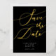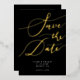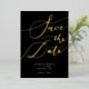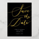 Elegant save the date card featuring hand lettered calligraphy text that says "save the date" in gold on a black background. You can add a photo on the back.