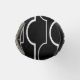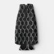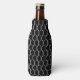 This bottle cooler has an art deco design of white half circles connect with lines on a field of black.