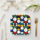 Seamless Repeat Geometric Black Scandinavian Nordic bauhaus Style Mid century Red, black, yellow, blue and green circles and semi circle shapes Decorative Modern Pattern Design on white background