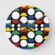 Seamless Repeat Geometric Black Scandinavian Nordic bauhaus Style Mid century Red, black, yellow, blue and green circles and semi circle shapes Decorative Modern Pattern Design on white background