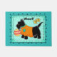 Black Scottie Dog Welcome Woof Turquoise Teal Doormat