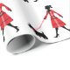 Black Scottie Silhouette being walked by a girl in a red tartan plaid coat Wrapping Paper.