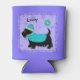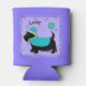 Enjoy drinking your favourite beverage with this fun and whimsical beverage cooler kookie. Personalise with your dog's name, your name or other words. Your dog love will shine with this unique one of a kind kookie with a cute black terrier dog dressed for the occasion. This whimsical black Scottie Terrier is wearing a turquoise aqua or teal blue sweater coat decorated with a lavender and lime green accents. The Scottie dog is wearing a toboggan of the same colours for a turquoise and lavender stripe with dogs on the cuff. The background is lavender and purple with tonal purple snowflake accents to make a stylish, trendy and decorative cooler. A turquoise teal blue flower is above the dog. This cute, cuddly and trendy dog is original art by Phyllis Dobbs and will melt the heart of a dog lover. This Scottie is one of a series of 6 Scotties and all are fully customisable to make it your own! Coordinate with matching products.