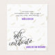 Chic gift card for your lash business with faux gold eye lashes sprinkled over white background. Gift Certificate is written in a lovely swirly black script. Your name and service in purple block letters. Add the name of your business on the cover and, on the back, your contact info. Inside you can write a disclaimer or restrictions of the gift card.