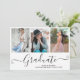 Black Script Graduate 4 Photo Collage Graduation Invitation. For further customisation, please click the "Customise it" button and use our design tool to modify this template.