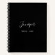 Modern, minimal black and white personalised name notebook featuring a beautiful script font on top paired with a strong, classic font on bottom. Customise with your name, family name, or company name for everyday or special occasion use.