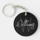 This design features personalised name in white modern handwriting script font style and monogram in grey modern sans serif font style as background, on black background.