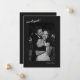 This elopement announcement features "we eloped!" in casual handwritten script at the top of a true black card with a large black and white couple photo and your date and location below. The back has a second photo with room for a few sentences about your day and a sign-off with your names — so you can actually tell the story, not just share the news. It's personal and a little cinematic, perfect for couples who want their announcement to feel like them.