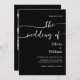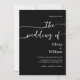 Celebrate your special day with this elegant black wedding invitation featuring romantic handwritten script and a personalised photo on the back. The minimalist design pairs crisp white text with a sleek black background for a modern and sophisticated look. Perfect for formal or contemporary weddings. Fully customisable with your names, date, location, and photo for a stylish and personal touch.