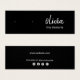 Solid black earring display holder with two printed hole "markers". Script font in white.