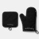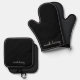 Black Script | Stylish Monogram Modern Oven Mitt & Pot Holder Set
