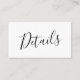 Black Script Calligraphy Wedding Details Enclosure Card, for those last minute additional details on your big day. A simple design that can go with your wedding invites. Also available in black background.