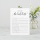 Black Script Who Knows the Bride Best Shower Game Enclosure Card