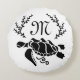 Black Sea Turtle Silhouette Side View Round Cushion