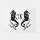 Two seahorse in a serpentine shape,is done in silhouette style. At the base of the seahorse is seaweed.