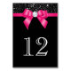 Elegant custom hot pink, black and white table number cards with a beautiful printed image black sequins pattern, a cute shiny hot pink printed bow and ribbon and pretty printed diamond bling jewel on a black background with white customisable text. These classy, glamourous, fashionable cards are decorated both sides. PLEASE NOTE: These are flat printed graphics - no real bows, sequins or raised parts. Text, font and colour of font can all be customised. If you need assistance customising your product please contact me through my store. I will be happy to help. I have matching products in my store.