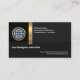 At the top left corner is a gold global logo you can use with your your prestigious name and job title across the vertical gold stripe. Southwards to the base lies the business name, contact details and a slogan option in the opposite direction.