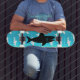 Black Shark Grey Shark Pattern Blue Background Skateboard