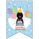 Make your black Sheepadoodle's birthday special with our adorable dog-themed design featuring a party hat and colourful balloons.