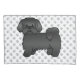 Destei's original cartoon illustration of a cute black colour Shih Tzu breed dog. The background has a pattern of grey dog paw prints.